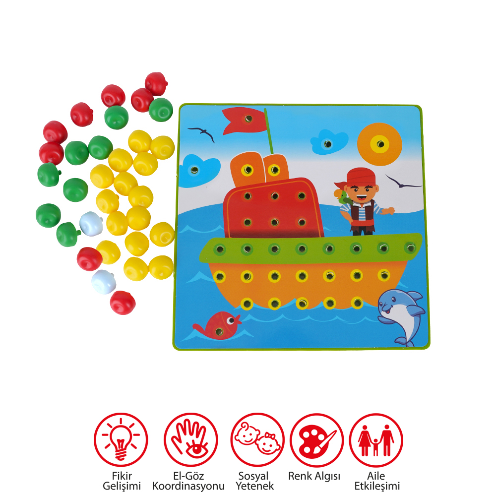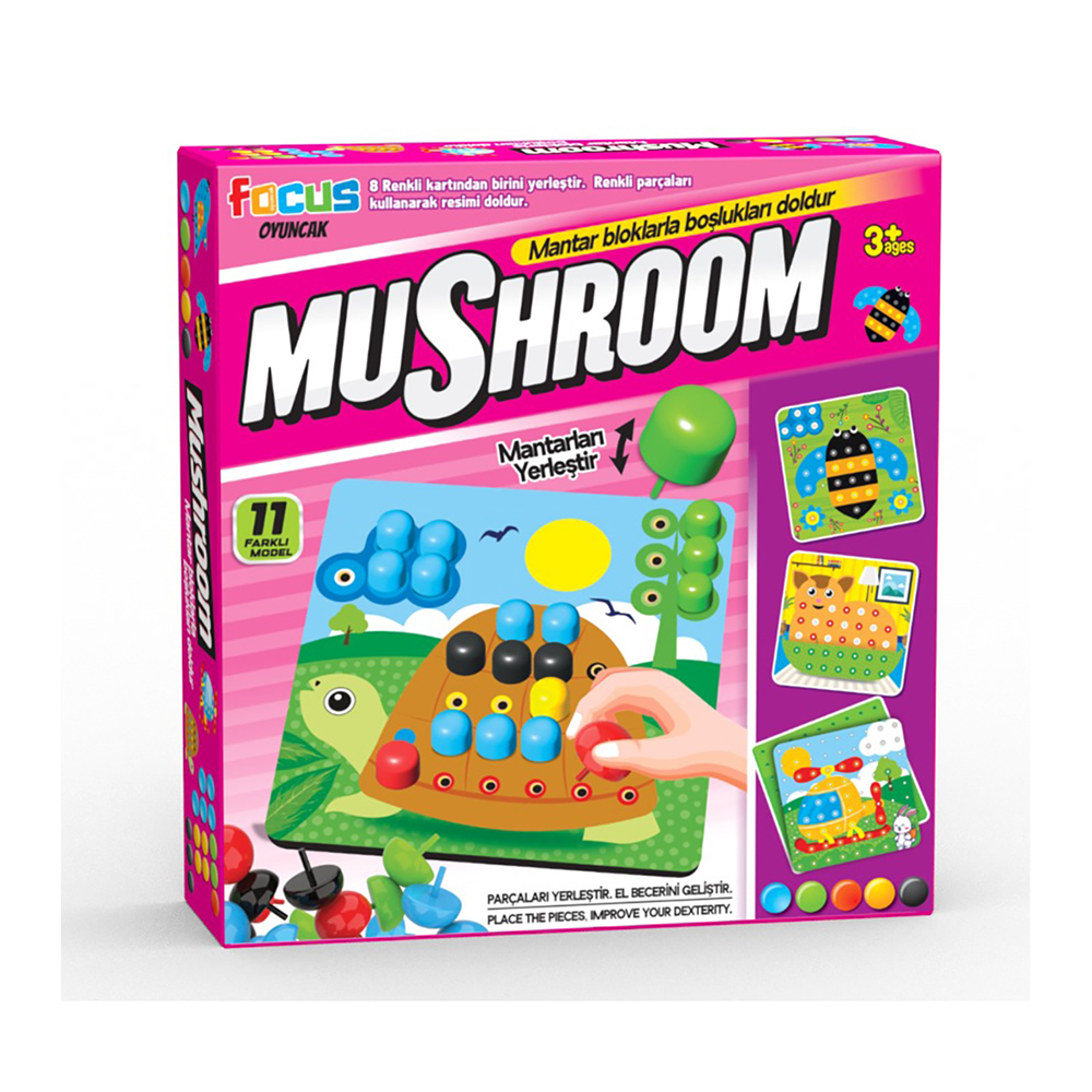 - Dizilim Tamamlama: Tüm renkli mantarları model resimdeki gibi tablanın üzerine doğru şekilde dizdiğinizde, model tamamlanmış olur.